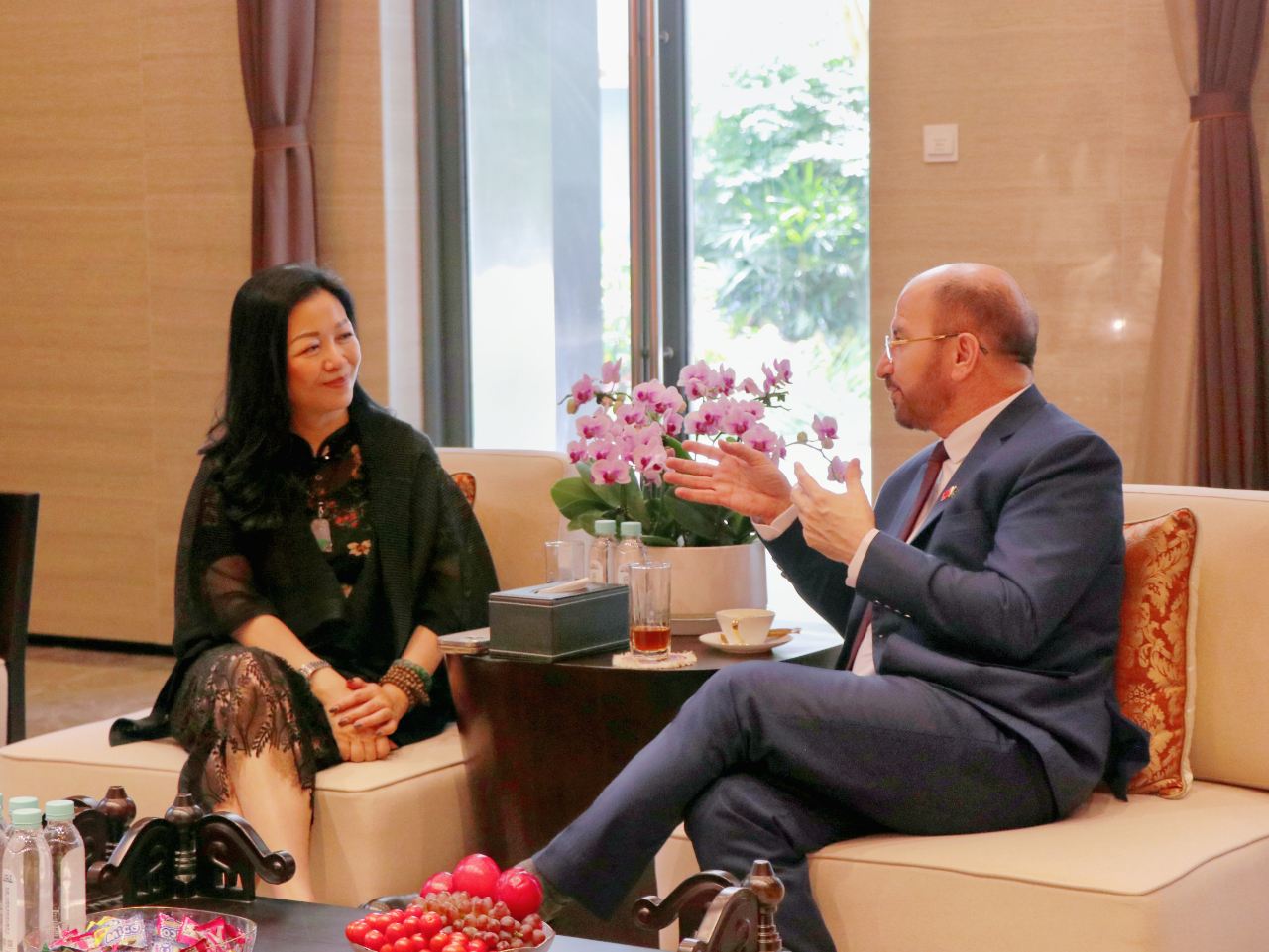 查看詳情5月9日下午,馬來(lái)西亞駐南寧總領(lǐng)事館總領(lǐng)事阿哈默·法蒂爾·伊斯邁爾、馬來(lái)西亞駐廣州總領(lǐng)事館商務(wù)領(lǐng)事哈里斯一行到訪中國(guó)—東盟特色商品匯聚中心,實(shí)地調(diào)研項(xiàng)目的發(fā)展情況。中國(guó)—東盟特色商品匯聚中心董事長(zhǎng)趙海燕熱情接待領(lǐng)事們一行。